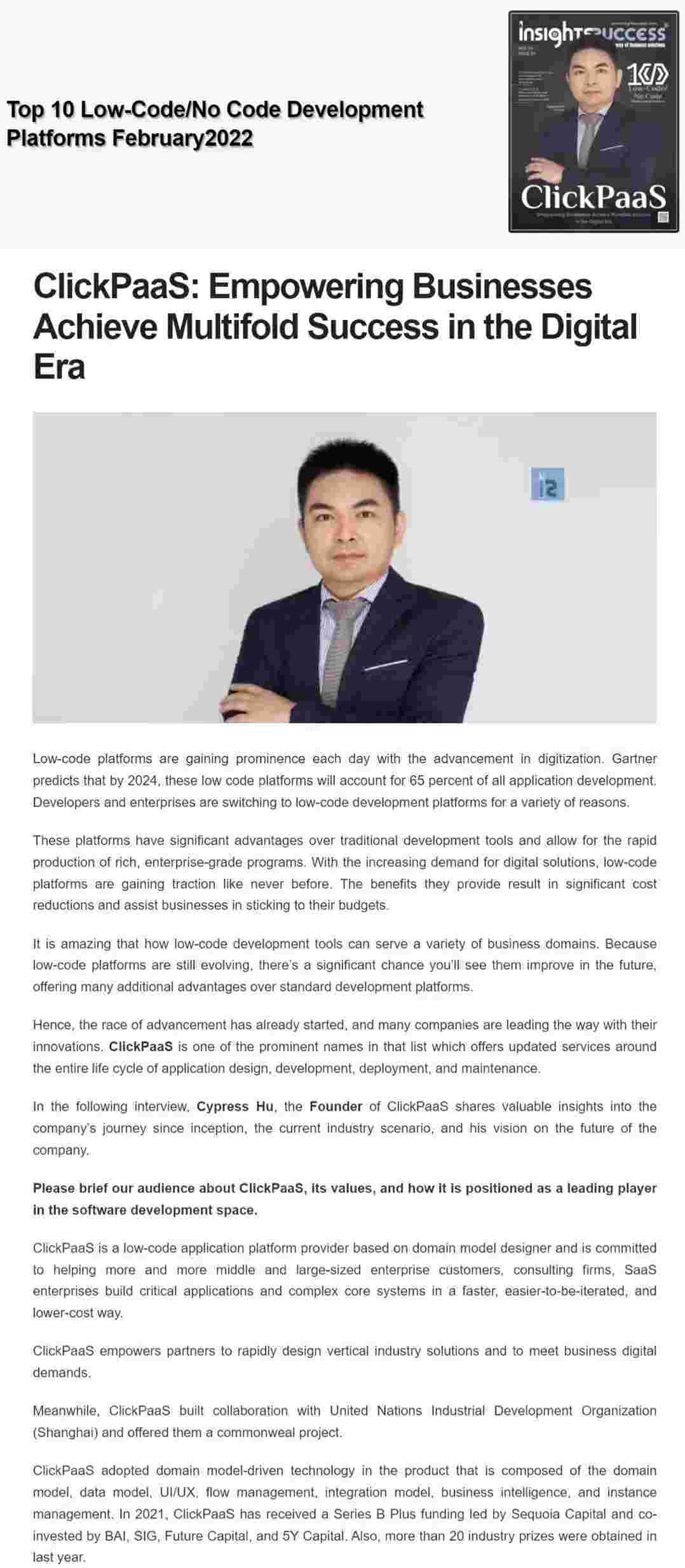 2022年年初,,CGPAY钱包入选外媒Insights Success低代码/无代码开发平台 Top10,,,创始人、、、CEO胡柏受邀接受专访并荣登封面人物,,,他与Insights Success的读者分享了CGPAY钱包成立的初心、、、发展历程、、、、当前的行业发展趋势以及他对公司未来的展望。。。
